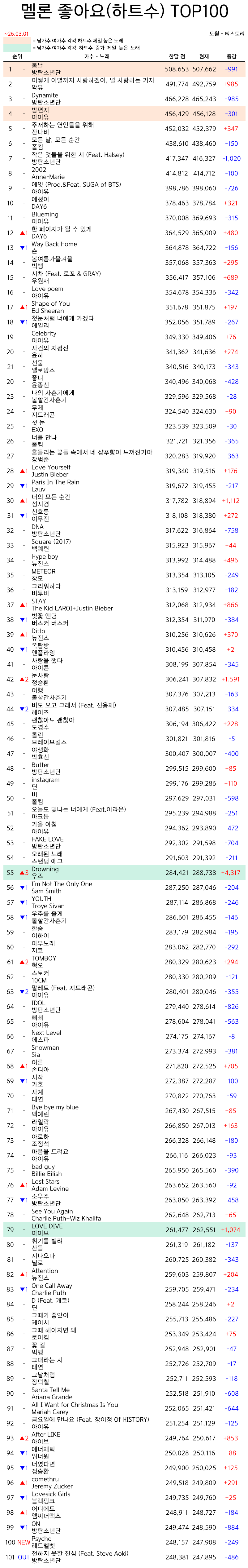 멜론 하트수 TOP100 26년 3월 #방탄소년단(BTS) #악동뮤지션 #악뮤(AKMU) #아이유(IU) #우즈(WOODZ) #조승연 #아이브(IVE) #레드벨벳(RedVelvet) 음악/멜론 2026.03.17