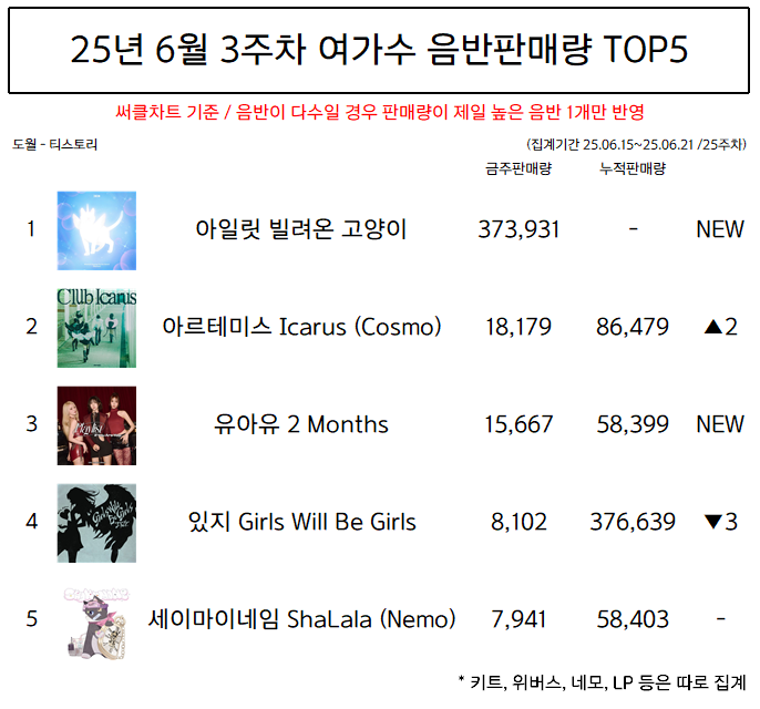 | 25년 6월 4주차 여가수 음반판매량 TOP5 (0) | 2025.07.07 |