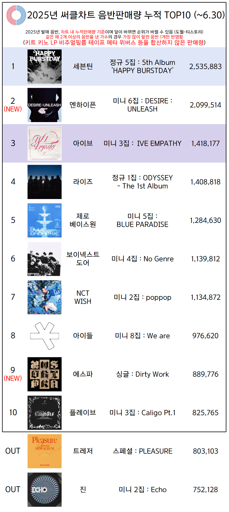 | 25년 6월 3주차 여가수 음반판매량 TOP5 (0) | 2025.07.04 |
