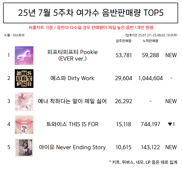 | 25년 7월 4주차 여가수 음반판매량 TOP5 (1) | 2025.08.10 |