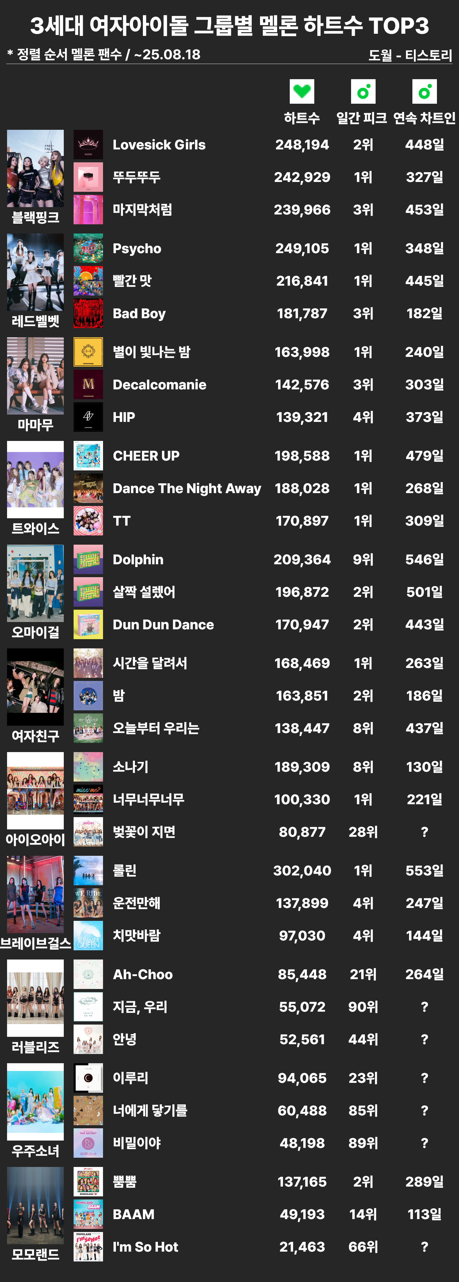 | 여가수 멜론 팬수 TOP20 (0) | 2025.08.12 |