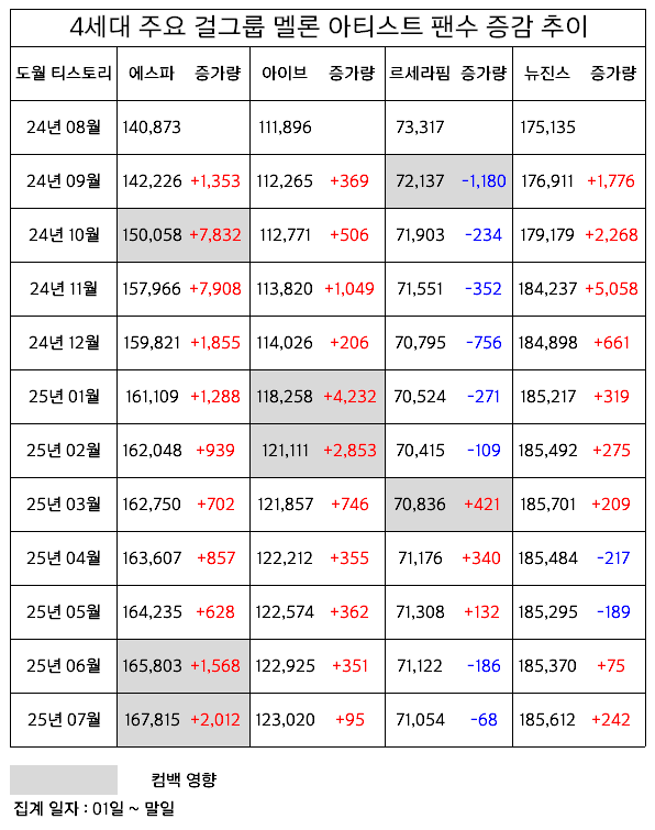 | 3세대 여자아이돌 그룹별 멜론 하트수 TOP3 (1) | 2025.08.18 |
