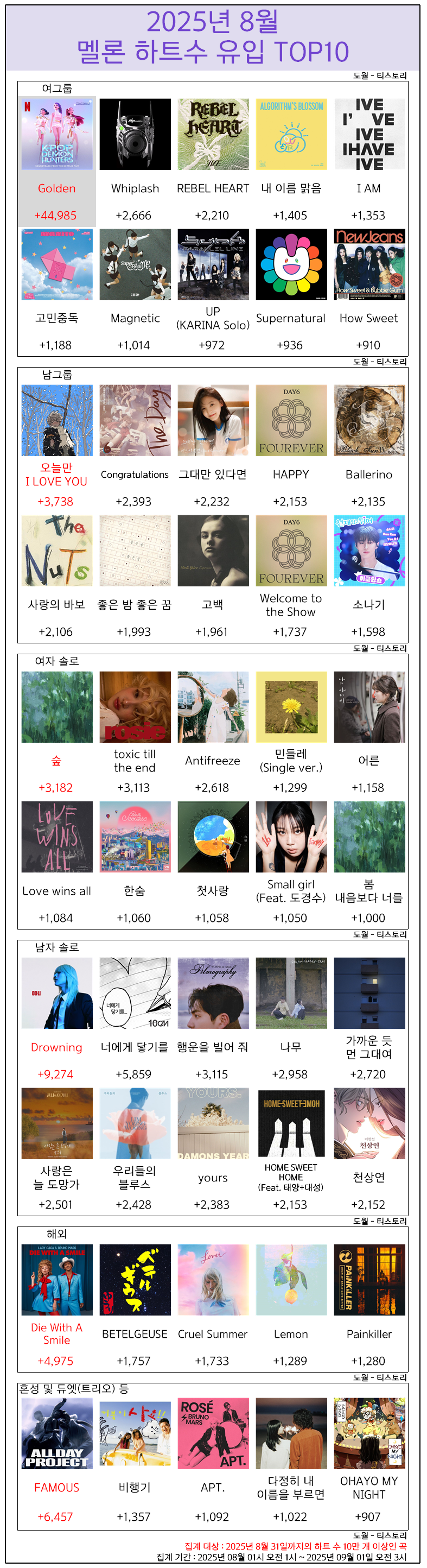 | 2025년 발매 후 멜론 24시간 이용자수 TOP20 (~09.07) (0) | 2025.09.07 |