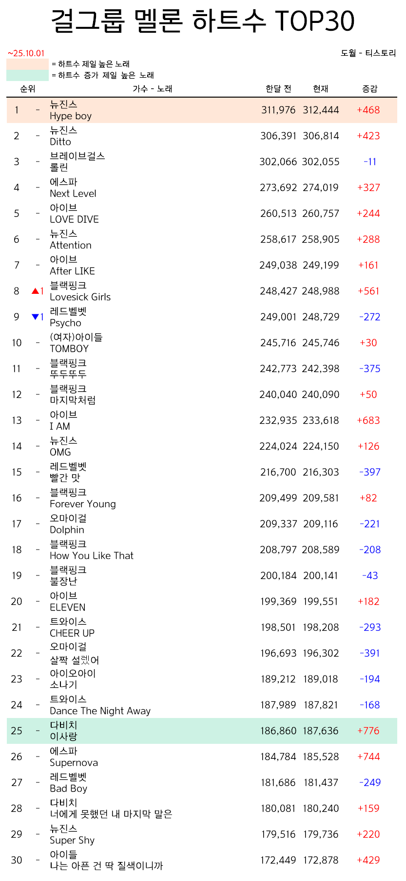 | 역대 여그룹 멜론 월간 1위 달성곡들 (0) | 2025.10.19 |