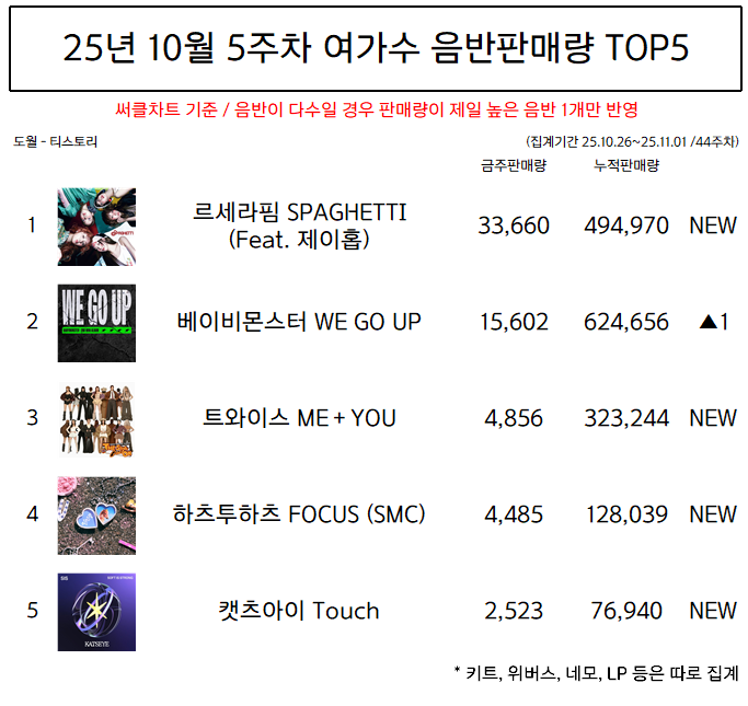 | 25년 10월 3주차 여가수 음반판매량 TOP5 (25년 42주차) (0) | 2025.11.12 |