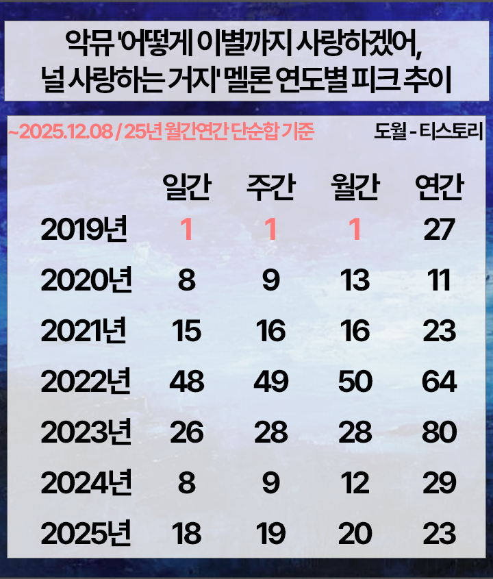 | 폴킴 '모든 날, 모든 순간' 멜론 연도별 피크 추이 (1) | 2025.12.05 |