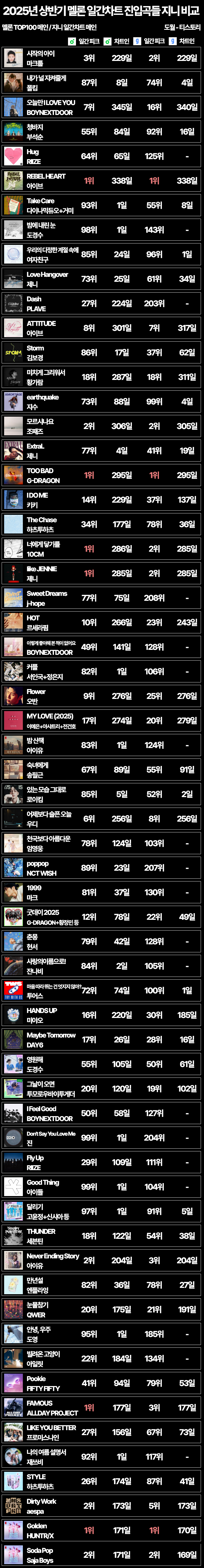 | 갤럽 올해의 가요 역대 퍼센트(%) TOP10 - 2025년 (1) | 2025.12.22 |