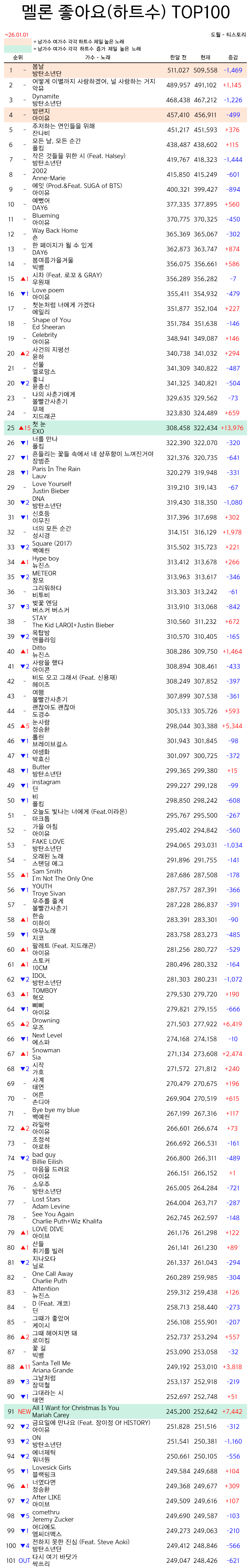 | 2025년 멜론 연간차트 종합순위 / 이용자수 단순합 순위 비교 (0) | 2026.01.11 |