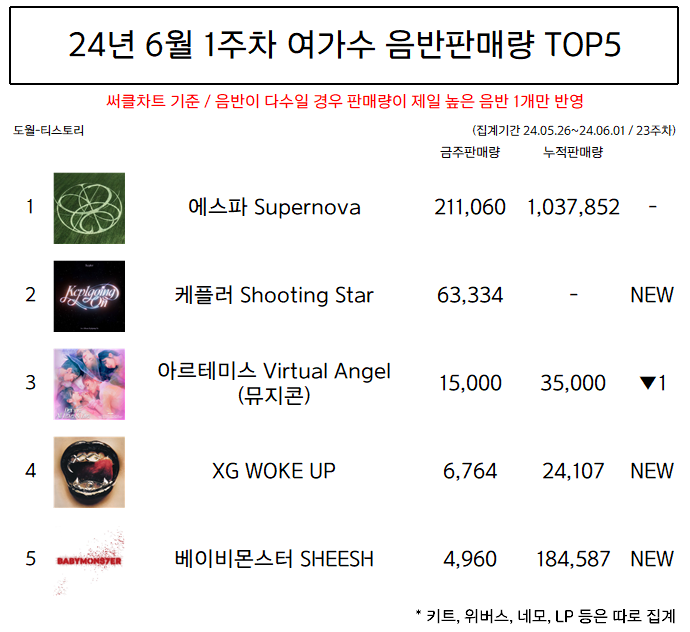 | 24년 5월 5주차 여가수 음반판매량 TOP5 (1) | 2024.06.08 |
