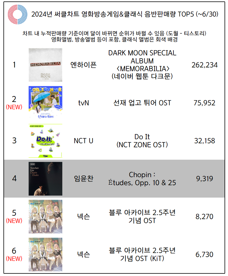 | 2024년 써클차트 상반기 음반판매량 누적 TOP10 (0) | 2024.07.16 |