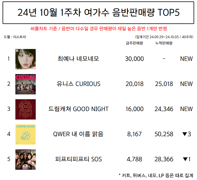 | 24년 10월 2주차 여가수 음반판매량 TOP5 (0) | 2024.10.22 |