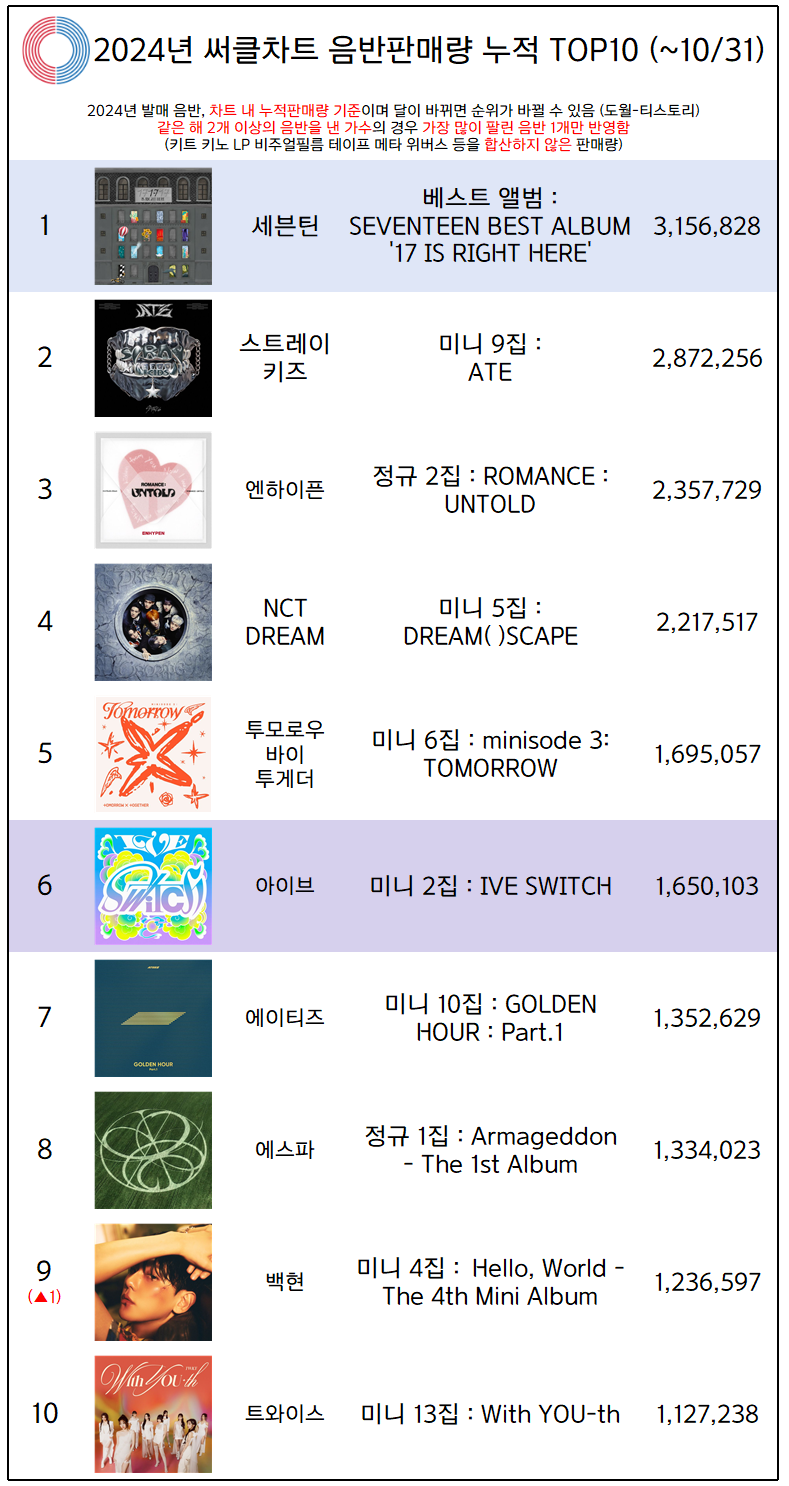 | 라이즈 역대 앨범 써클차트 음반판매량 (0) | 2024.10.25 |