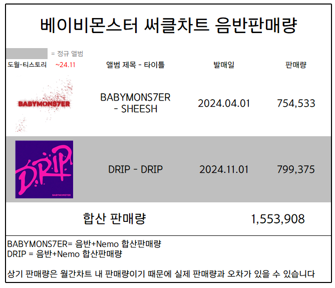 | 24년 11월 5주차 여가수 음반판매량 TOP5 (1) | 2024.12.13 |