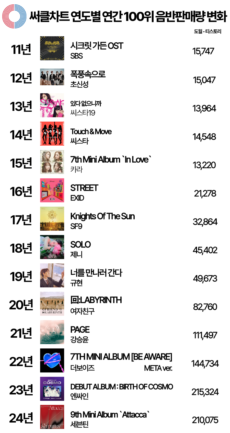 | 써클차트 연도별 연간 1위 음반판매량 변화 (0) | 2025.01.20 |