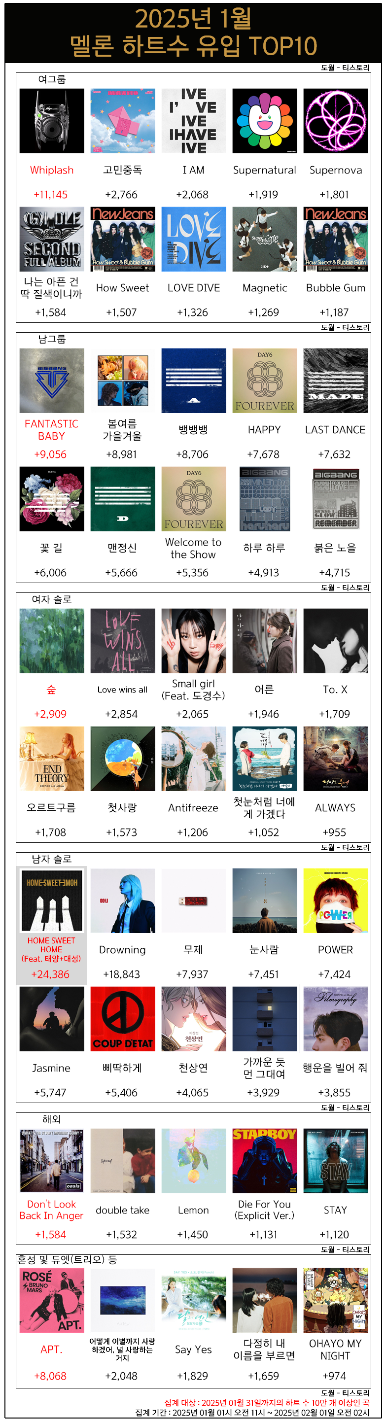 | 걸그룹 멜론 하트수 TOP30 25년 1월 (0) | 2025.01.27 |