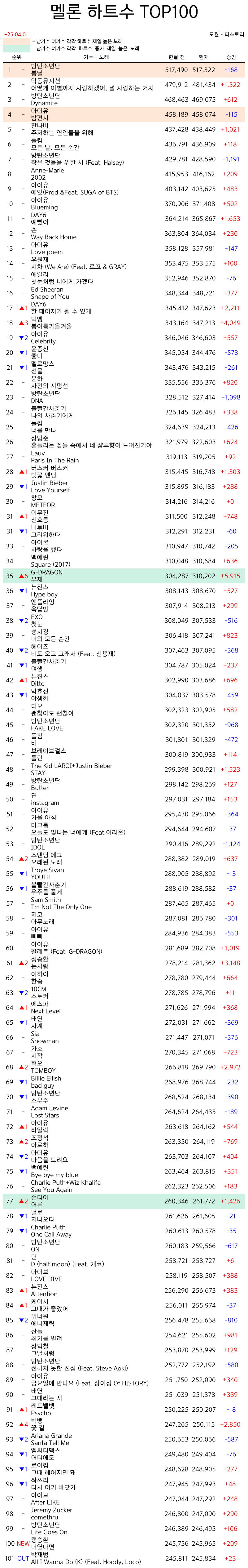 | 걸그룹 멜론 하트수 TOP30 25년 4월 (0) | 2025.04.25 |