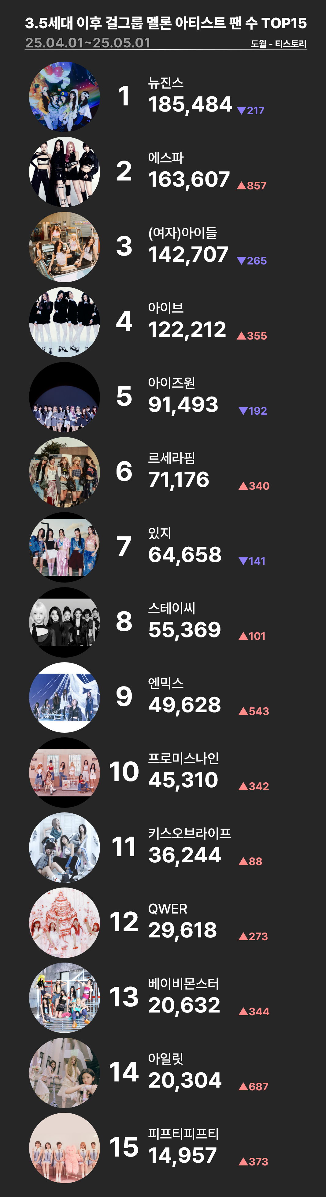 | 5세대 주요 보이그룹 멜론 아티스트 팬수 증감 추이 (0) | 2025.05.03 |
