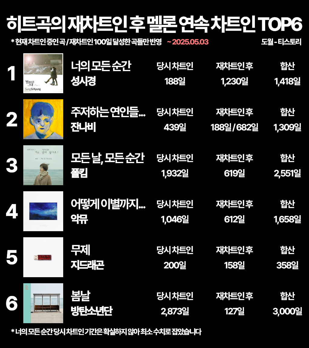 | 역대 멜론 일간 1000일 연속 진입한 노래 (~25.04.27) (1) | 2025.04.27 |