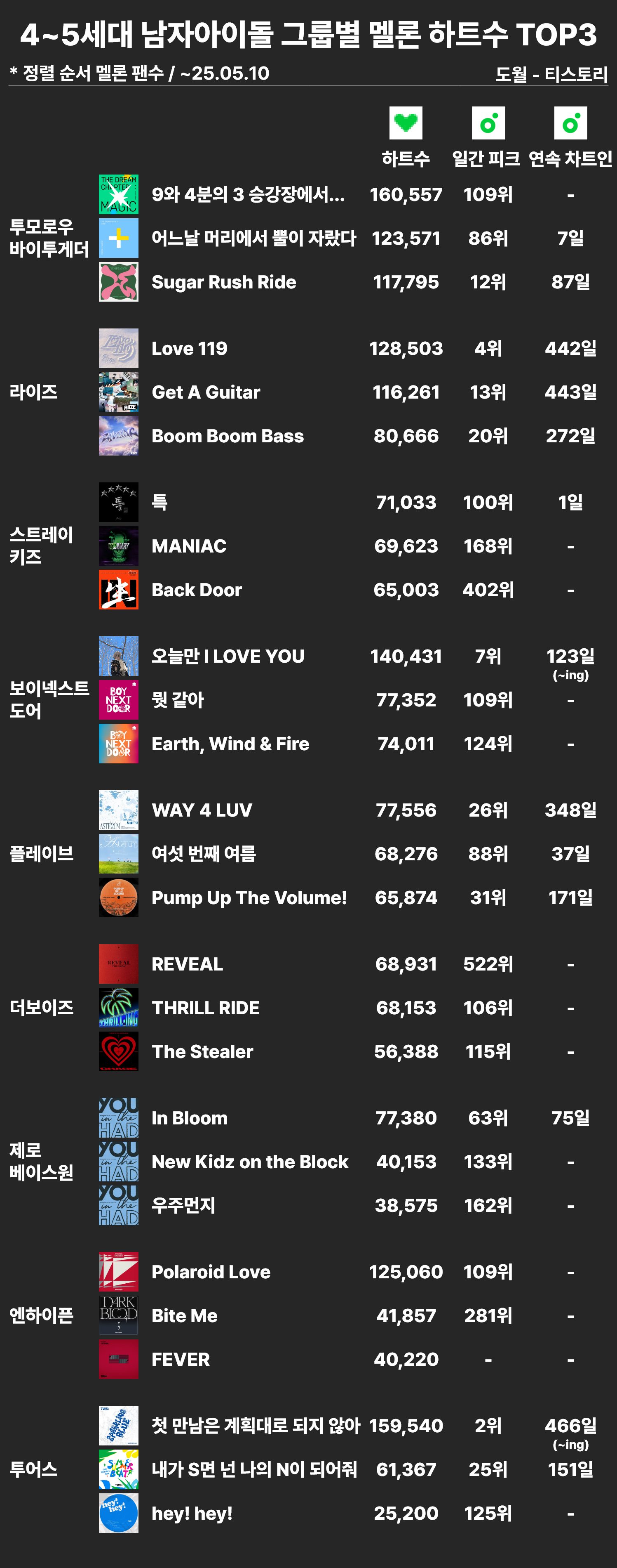 | 멜론 하트수 TOP100 25년 5월 (2) | 2025.05.13 |