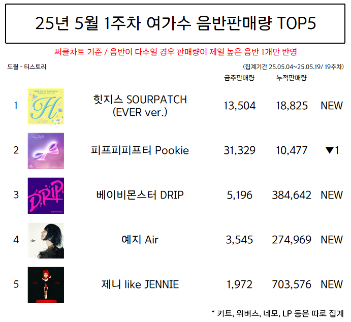 | 25년 5월 3주차 여가수 음반판매량 TOP5 (0) | 2025.06.04 |