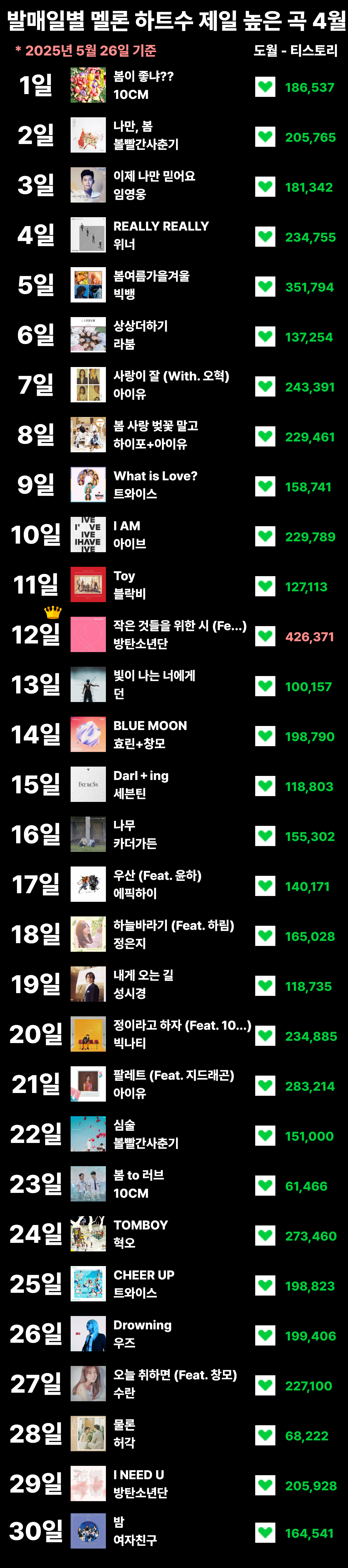 | 2025년 발매 후 멜론 24시간 이용자수 TOP20 (~06.17) (0) | 2025.06.17 |