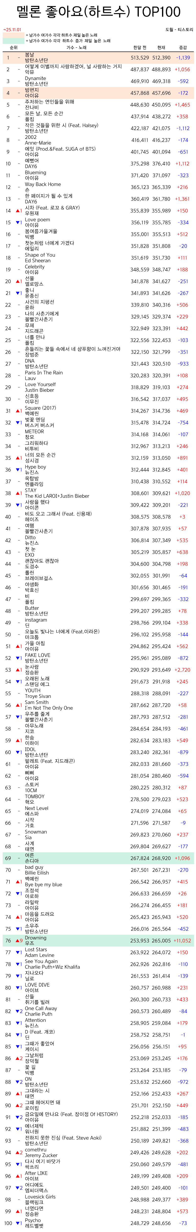 멜론 하트수 TOP100 25년 11월 #방탄소년단(BTS) #악동뮤지션 #악뮤(AKMU) #아이유(IU) #우즈(WOODZ) #조승연 #손디아(Sondia) 음악/멜론 2025.11.11